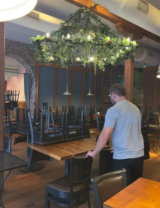 Tables, chairs, floors, and restrooms spotless for guests.